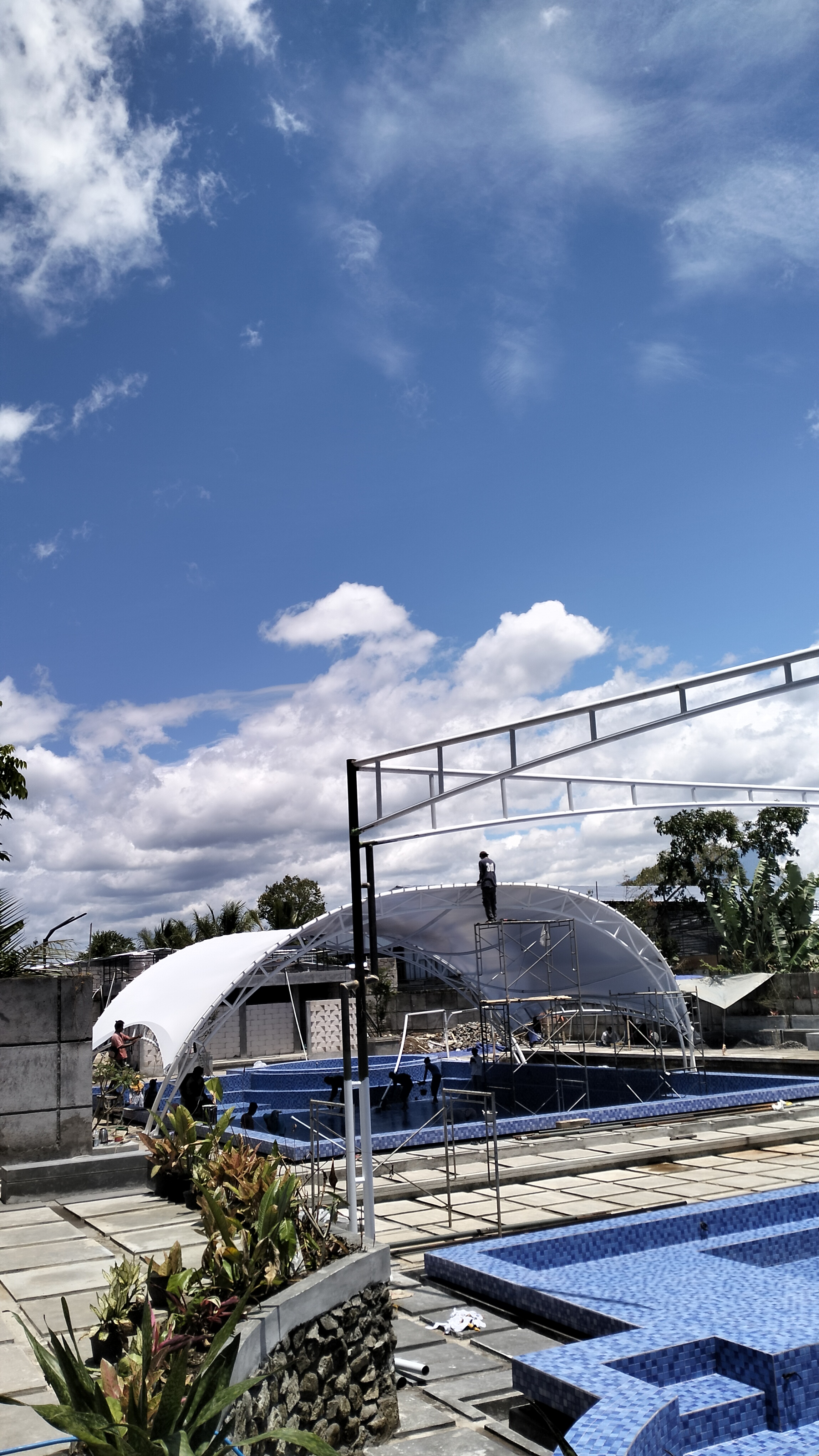 9. Bagaimana proses pemasangan tenda atau kanopi membran?